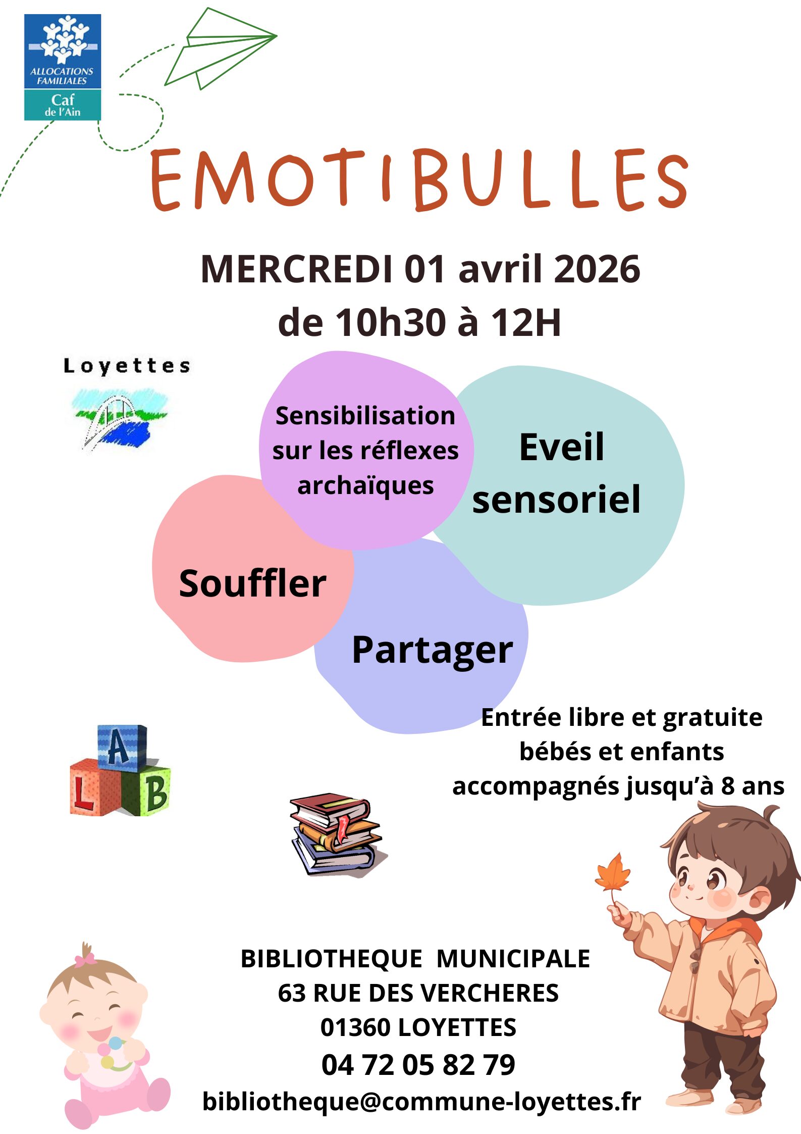 Prochaine séance Emotibulles le mercredi 01 avril 2026 de 10h30 à 12h pour les familles. Avec un atelier exceptionnel: une sensibilisation aux réflexes archaïques par une kinésiologue.